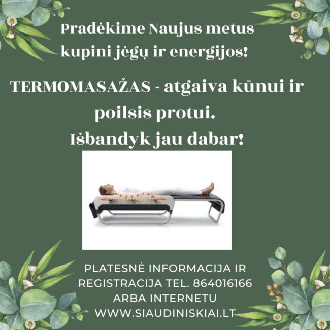 Kviečiame Naujus metus pradėti energingiems ir kupiniems jėgų. Tam į pagalbą – termomasažas.