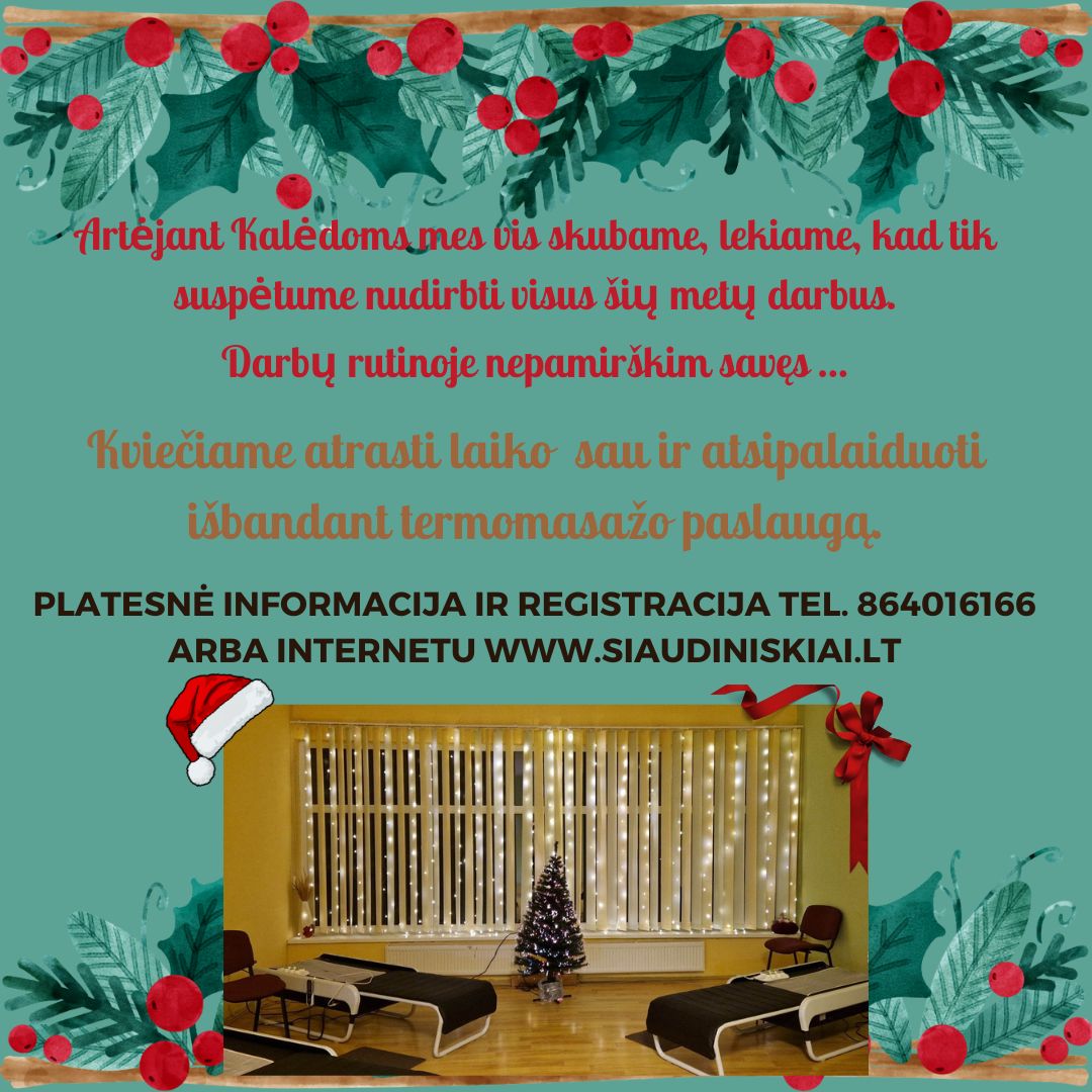 Šiaudiniškių kaimo bendruomenėje galite išbandyti termomasažo paslaugą. Būtina registracija internetu www.siaudiniskiai.lt arba telefonu nurodytu skelbime.