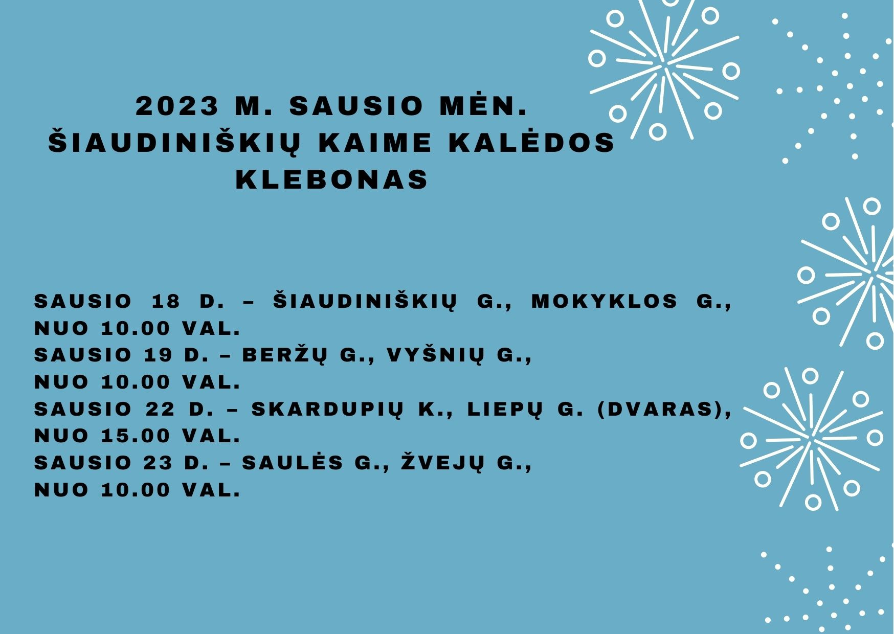Nuo sausio 18 d. Šiaudiniškiuose pradės kalėdoti klebonas.