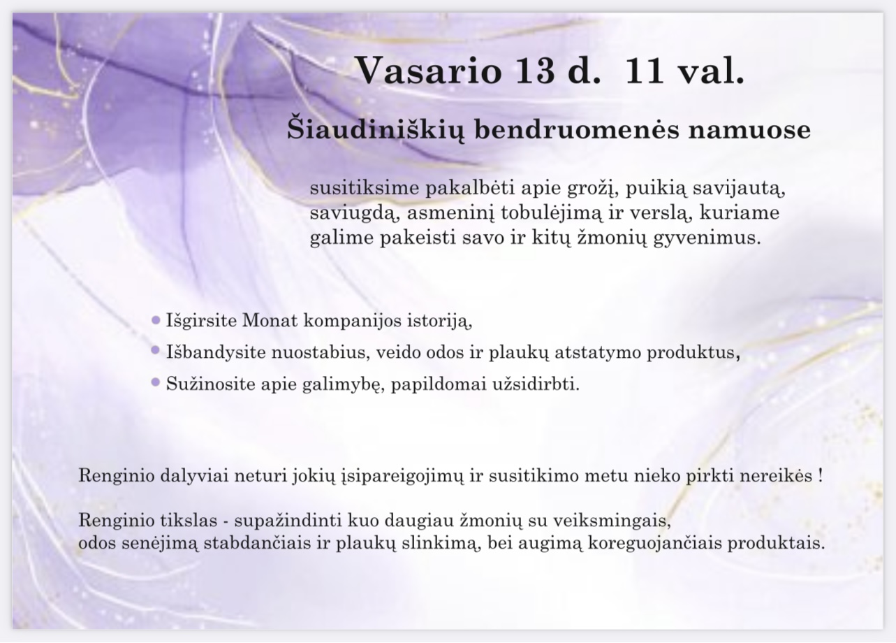 Kviečiame susitikti ir sužinoti daugiau apie Monat kompanijos priemones.