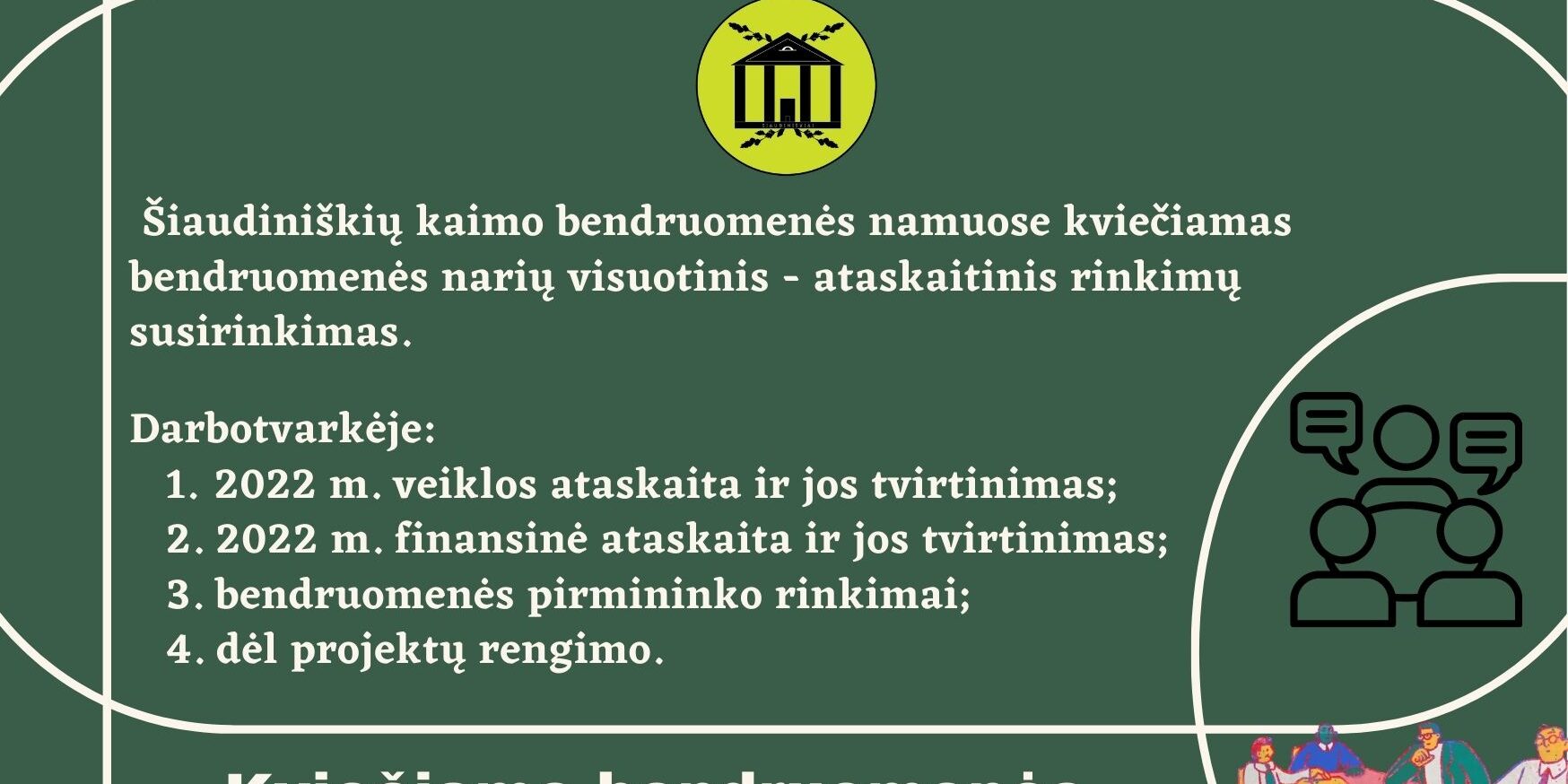 Vasario 9 d. 16.00 val. bendruomenės namuose vyks Šiaudiniškių bendruomenės narių visuotinis, ataskaitinis rinkimų susirinkimas.